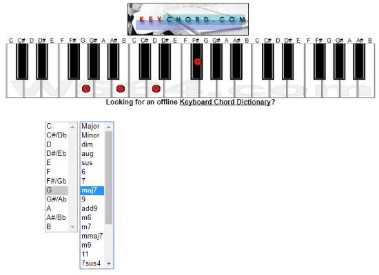 ChordFind is probably the best free online piano chord generator which can be used to easily generate piano chords. To do that, simply open up the website and then select a key and chord type for generating a chord. You will see separate menus for piano keys and chord types. As soon as you’re done with that, it will automatically generate the piano chord and show it to you on a keyboard at the top. This will help you know how to exactly play that particular chord on a real piano or keyboard.