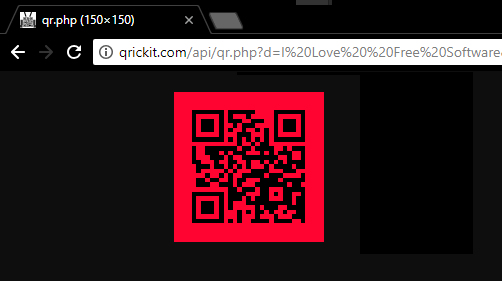 API URL: http://qrickit.com/api/qr.php?d=ILoveFreeSoftware&bgdcolor=FF0430&fgdcolor=FFFFFF