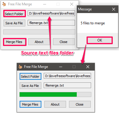 This software is definitely simple to use, but does not give any options at all. So, use this software only if you want to merge all text files of a folder in one go.