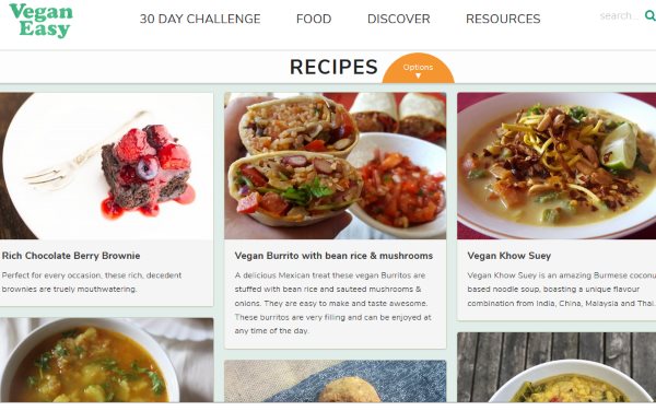 Vegan Easy is a website dedicated to vegan recipes. There are so many recipes that you can find on this website, that you will never run out of options to make. The recipes are neatly tiled on the website and look visually appealing. Each recipe has an image, its name, and a small description with it. You can click on any recipe tile to expand it. When you click on a recipe, it will open up in full page showing you all the ingredients required and method to cook.