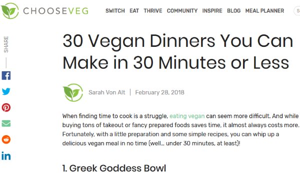 So let’s look at these free websites for easy vegan recipes below.
