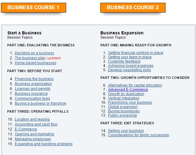 lynda.com is another free portal that you can visit to learn how to do business. The website is not limited to teaching business methods, and actually covers a wide array of topics. Choose the business option from the list of options on the home page, and you will be taken to a gallery that is full of knowledge regarding business plans and methods. There are video tutorials teaching you the basics of doing any business, videos that teach you how to communicate with your clients, management tips, and more. There is a huge library of video lessons and you can browse this library according to your requirements. The tutorials cover topics like business skills, communication, management, online marketing, presentation, and more. Each of this topic has multiple videos wherein, professionals describe everything in detail.