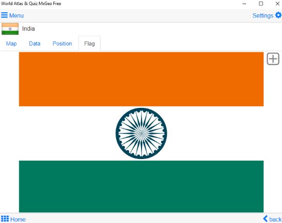 On top of the page you have four tabs, the map tab will show a map of the country, the flag tab will show the flag of the country, the position tab will show the exact location of the country on a globe, and the data tab will show all the data about the country. The app also has flag quizzes in it, which you can take to check out your knowledge about countries and their flags.