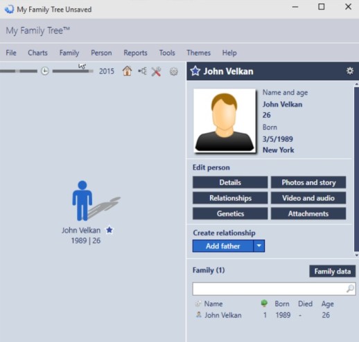 While building the family tree, you can input lots of data, personal info, images, videos, anything and everything to keep info about your family history in one place.