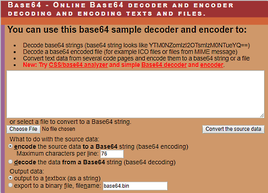 Some of these websites give you two options for the output; one to give you the Base64 text string and other to download it as a bin file. You can select any of these options as per your convenience. You can also use these websites to decode the Base64 string.