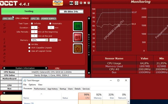 OCCT is another all around software where stress testing of the processor, memory, graphics cards and power supply is available. Each tab on the left represents a stress test for a different piece of hardware (CPU is there twice, two different tests).
