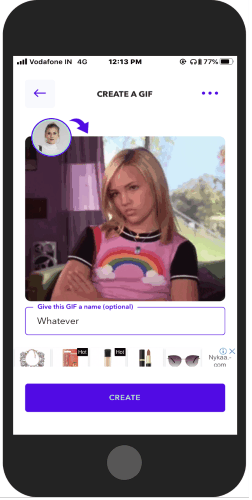 At this point, you can pick one GIF to use and create a GIF using your face in the photo. You can name your GIF if you wish and then tap on Create option.