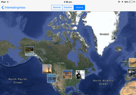 - Map: This option lets you view photos on map but it displays only those which have their location enabled. Hence, number of photos may vary day to day. You can choose from: Map, Hybrid, and Satellite.