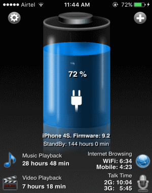 Battery HD+ is actually a free battery monitor app for iPhone. Similar to another app called “Battery Life Magic“, this one also shows how long can you play music, watch videos, talk, and browse the Internet with your current battery level. It also comes with an additional and useful feature which notifies you by playing a sound when the battery is fully charged. In addition to that, you can tune the battery level to any value you want, and get notified at that particular battery level.