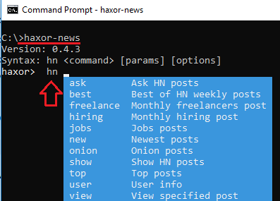 Step 2: When the installation is successful, you can run it like this. The “haxor-news” command is the primary command to invoke it. Later you can execute other commands to see the posts, comments, web-linked content. There are various command to use this and they are listed below.