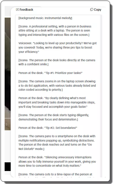 In this way, you can now generate a complete video script with proper instructions. Just try it like I have shown here and then generate video scripts in a click. Use it for creating your next trendy videos and it will not let you down. I liked the fact that it includes scenes and dialogues in an organized way, so you will know exactly what needs to be spoken.