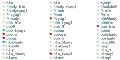 It actually also tells you if a particular twitter username is already taken or not. For that, just click on the name that you like. If the name is available, then it will put a Green star before that name, but if that name is already taken, then it will put a Red star, as you can see below.