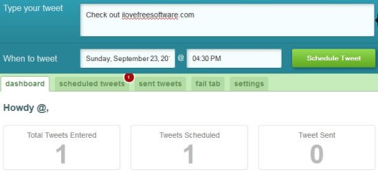 The beauty of Twuffer lies in its simplicity. You just write the tweet, and pick the scheduled time, and you are done. You don’t need to download or install anything, and it is a completely free tool to schedule tweets. I had earlier reviewed another software called Twaitter that lets you schedule tweets, and do much more stuff.