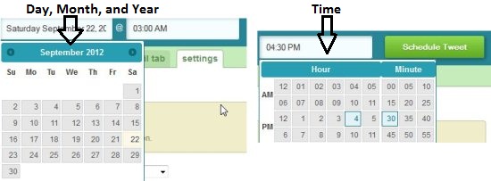 - Schedule the day, month, year, and time when to tweet as shown below.