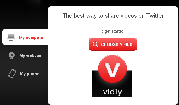 Vidly is a really easy way to post videos on Twitter. To post a video on Twitter, you can upload a video from your computer, or can directly record the video from your webcam. Once you are done, Vidly lets you send a tweet with your video link in it. When anyone clicks on the link, they are taken to Vidly website to see your video. Vidly makes process of posting videos on Twitter extremely easy.