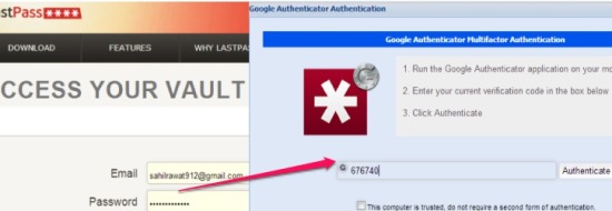 In above screenshot, you can see an example of LastPass two factor authentication with the help of Google Authenticator authentication.