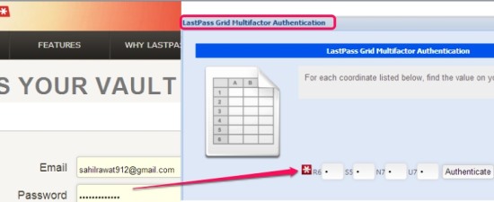 LastPass also allows other two factor authentication applications, like Toopher, Duo Security, and Transakt. Apart from this, there is Grid Multifactor Authentication option available that provides codes, which you need to enter while logging to your account.