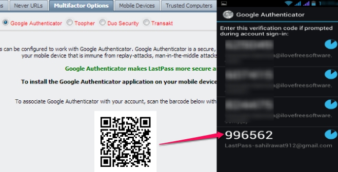 LastPass two factor authentication helps users to increase security of their LastPass account. Enabling this two factor authentication allows you to enter an authentication key (after providing email id and password) to successfully log in to LastPass account. Without that key, nobody can access your account, even if your password is compromised somehow. You can enable LastPass two factor authentication with the help of an authenticator app for mobiles, like Google Authenticator, that helps to generate security codes. You have to enter that security code, after entering LastPass id & password to open your account.