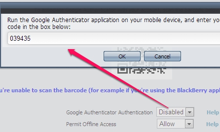 Step 3: After receiving the code, Enable Google Authenticator Authentication option and enter the received code at the required place.