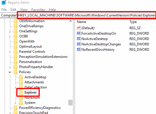 Step 2: In Windows 10 Registry, select ‘Explorer‘ key. This key is available under the main HKEY_LOCAL_MACHINE key. You need to use this path to access Explorer key: HKEY_LOCAL_MACHINE →then SOFTWARE →expand Microsoft →then Windows →expand CurrentVersion →then Policies → and then you can select Explorer key.