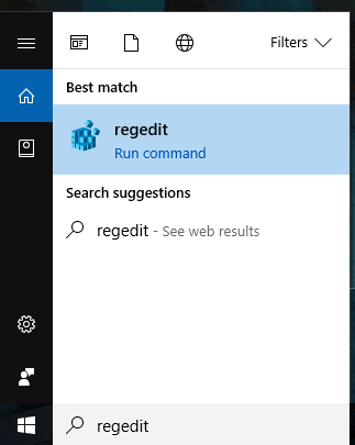 Step 1: Click on Windows 10 Search box, then enter ‘regedit‘ in that box, and start Registry Editor.