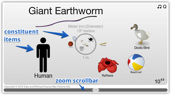 The best thing about The Scale Of The Universe is that it is ridiculously simple to use, and works simply by zooming in and out with your mouse scroll wheel (or the horizontal scroll-bar provided for the same). Here’s a step wise tutorial, explaining how to get started with this fantastic online tool: