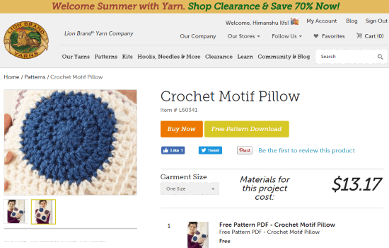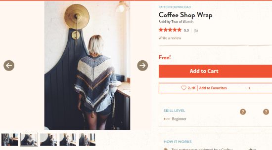 Lion Brand is a free website to get free awesome knitting patterns online. There are plenty of beautiful knitting patterns which you can pick to design an accessory like scarves, hats, beanies, etc. on your own. These pattern details can either be read on the website or downloaded as a PDF separately. A detailed procedure to design the knitting pattern is written in the PDF which can be easily followed. You don’t need to create an account in order to download the free knitting patterns. Go to the website from the link provided above to access all the free knitting patterns of different clothing items. If you are looking for a specific type of knitting patterns, then you can apply filters from the left panel. You can filter knitting patterns by skill level required, type of yarn used, accessory size, brand, etc. After applying filters, choose a knitting pattern to view its high-quality images and materials required for the project. For a knitting pattern, you can see its images, steps to design, materials, and yarn types required. The best part is that you can download a PDF of all these knitting pattern details. To download the knitting pattern as PDF, click on the “Free Pattern Download” button right next to its image, as can be seen in the screenshot above.
