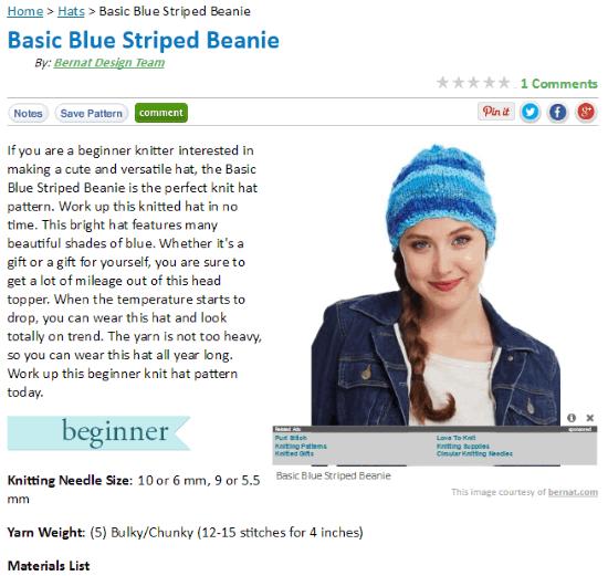 Yarnspirations is another free website to get free knitting (1500+) and crochet patterns. Similar to other free knitting websites on my list, it can help you find a good knitting pattern for your knitting project. You can download a free knitting pattern as a PDF which includes all of its details from materials required to steps of designing the pattern. However, while browsing several knitting patterns on this website, I felt quite disappointed as there was just one knitting pattern image available and I couldn’t even zoom in to see the knitting pattern details clearly. To access knitting patterns, go to the link provided above. After that, apply filters if you want to find specific knitting patterns. You can filter knitting patterns by brand, skill level, project type, etc. Then from the results open a knitting pattern to download it as a PDF, as shown above.