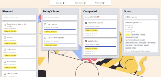 Caltra is free Trello alternative for individuals with repeated tasks, day highlights, and much more. Here this is a task manager for planning personal goals and milestones. It offers you a Trello like interface where you can add all your tasks and then mark them completed as you finish them. You can have a look at all the tasks and then you can use simple operations to change their states. Here team integration is missing because it is solely made for individuals. All you have to do is just sign in using Google account and then simply add all the milestones that you want to achieve.