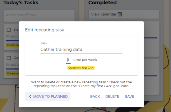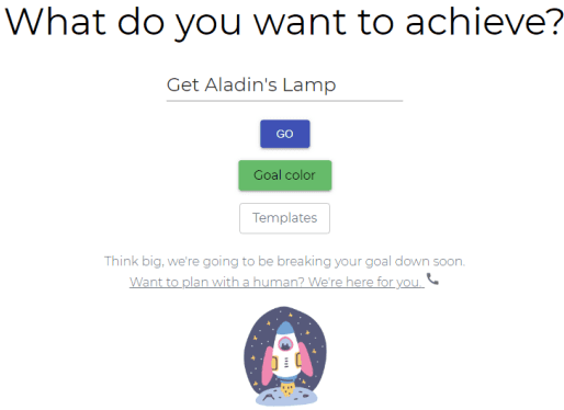 This is an extremely simple tool that you can use to plan personal goals with recurring tasks and moment of the day. All you have to do is just reach its homepage and then simply sign up using Google. After that, it will take you to the survey like interface where you have to define your goals and milestones. Also, here it will let you define the different tasks that need to be done in order to achieve the final goal.