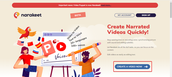 However, there is a web application that I mentioned previously in one of my articles that helps in creating the videos from either script or MS Powerpoint presentations. This web application was previously called Video Puppet but now its owner has renamed it to NaraKeet.