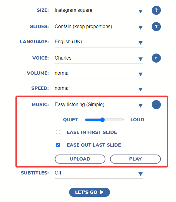 You can also choose the voice-over tone and type (male or female), the speed of reading the text, and the background music of the video.