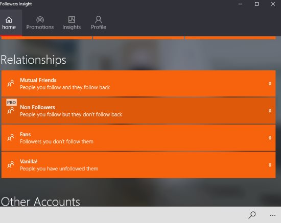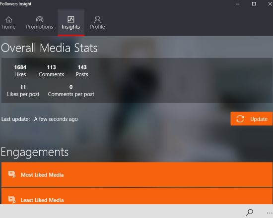 Followers Insight is a nice app for Windows 10 to know the statistics of your Instagram account. You can easily find out how many new followers you have, or how many people unfollowed you, etc. The app will sync with your Instagram account and give you a detailed analysis of the activity in your account.