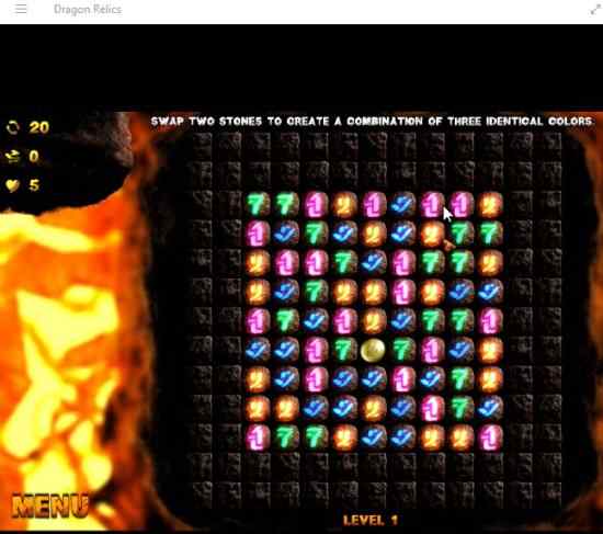 Dragon Relics is a free Windows 10 matching game app where you have to match 3 same symbols to eliminate them from the board and release the dragon relic coins by bringing them down. The game has nice graphics and background sound to keep you entertained. Match 3 puzzles are quite popular and gamers love playing them.
