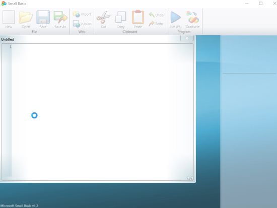 The run button on the tool bar will run your program and show the output on command line. The graduate button will export your small basic program in to Microsoft Visual Basic language. All you need to do is specify a location.