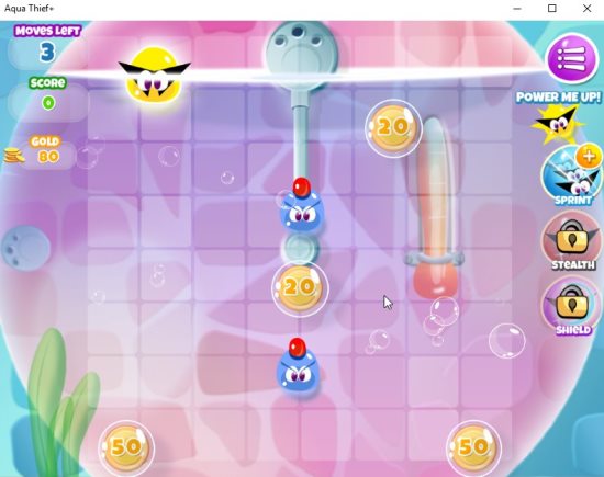 On the screenshot above you can see the aqua cops with red circles on them. They are patrolling the waters and if the aqua thief gets in their way then he is busted. So you have to make sure that aqua thief does not cross paths with the aqua cops.