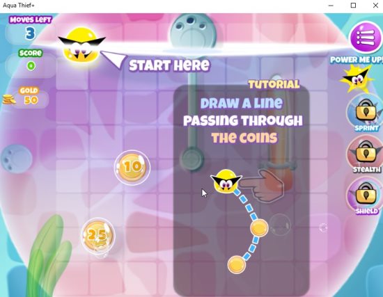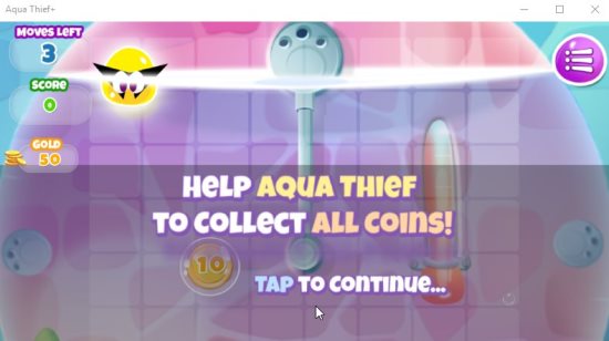 So aqua thief needs to collect all coins that are found underwater. Tap to continue. Now you will be shown the game play, that means you will see a screen which will show you how to collect the underwater coins. This can be seen in the screenshot below.