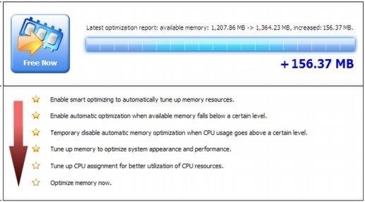 All you have to do is simply click on the “Memory Reduction” button and choose the desired memory cleaning areas. It quickly cleans up the memory space and lets you compare the before and after memory statistics in terms of percentage, after using this free memory optimizer.