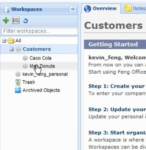 Since there’s a lot that this free office management software has to offer, we’re gonna stick to basic office management. Departments are important part of any office, and in Feng Office you can create departments using Workspaces.