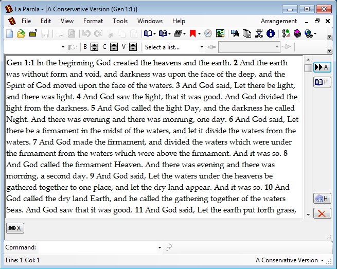 Interface of La Parola can be seen in the image above. All the menus and everything that’s important for using this free Bible study software is located in top part of the window. Down below a large empty area can be seen, this is where notes, navigator and everything else that you open up will be displayed.