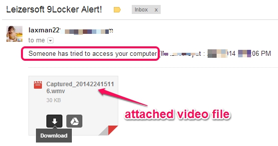 - Email notifications feature helps to send alerts whenever someone tried to logon to your PC in your absence. Moreover, it can even capture intruder’s video and can send that video as attached file to your email address. This will help you to easily recognize the person who had attempted to access your PC.