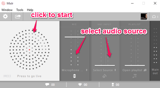 Mixlr is a free software to live broadcast audio and chat with listeners during the session. You can mix up to three different audio channels for broadcasting, which is one of the great features of this software. You have the choice to use Mic to broadcast own audio, share an audio file, and mix own voice with the audio track.