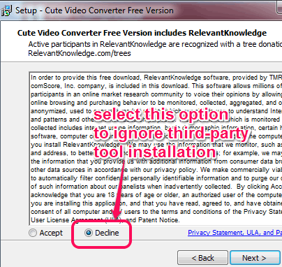 Use the link placed at the end of this review and access its homepage. Download the setup file and begin the installation. While installing this free video converter, a third-party tool will also be prompted for installation. You can just ignore the third-party product using the Decline button and complete the installation.