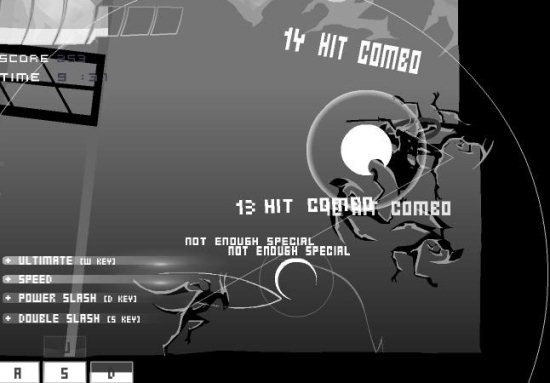 Click on the single player to start playing Culmination and you are forced to choose normal level. In the initial stages, you will be given a little training on how to play and you will be guided with a visual display of controls to use. The controls are: arrow keys to move your character and [WASD] to make fight moves. Use [A] to strike, [S] for double strike, [D] for power strike, and [W] for ultimate strike. Use up arrow twice to jump high or use up arrow continuously to climb walls. In the beginning, only [A] will be unlocked for making your sword moves. As you keep killing the special moves will be unlocked depending on the number of enemies you keep killing. You can use the combination of [WASD] to make special moves like the one shown in below screenshot.