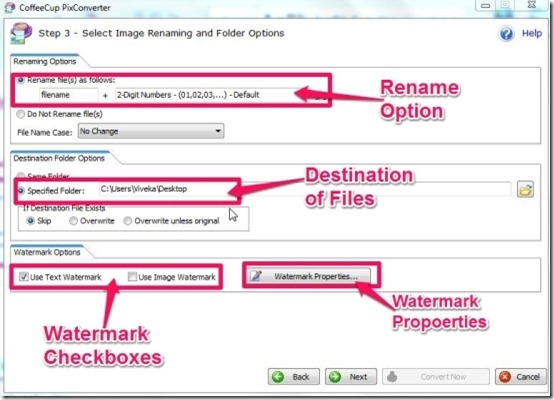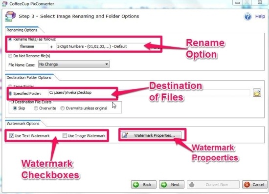 Step 4: This just a confirmation part that lets you check the options you have chosen for the image. You can go back to change them or to convert the images click on the “Convert Now”.