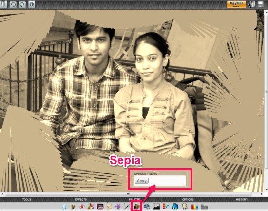 After that “Sepia” effect was being chosen and applied to the image. This was possible, after selecting the “Sepia” from the “Effects” section.