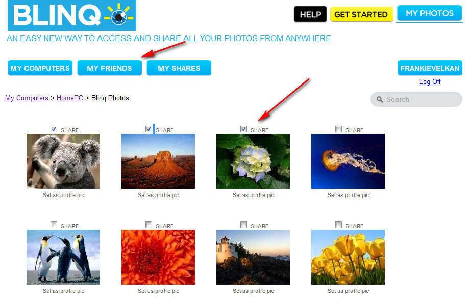Uploading large image collections can be a tiring task, that’s why with BlinQ you’re not actually uploading your images online, you’re turning your home computer into a web server that can be directly accessed using the internet and from which images can be viewed. Image above shows us our Pictures folder being viewed in our BlinQ account. Next to offering a unique way of sharing photos, BlinQ is also a social network, invite your friends, if they’re not already there and share your photos easily. Some of the interesting features found in this free image sharing service would be: