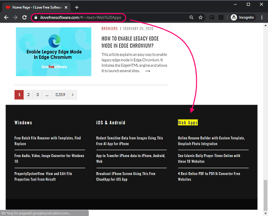Now, to share a link to a specific section of the webpage, first, open that page and pick a text fragment from that webpage which you want to link. For example, let’s say I want to link the “Web Apps” section of the homepage of this website. All I have to do is add that specific text fragment in the URL following this syntax: