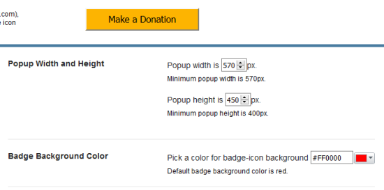 If you want, you can also customize the size of the pop-up window up to an extent. Access Options of this add-on and manually set the width and height for the pop-up window.