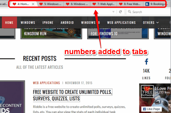Install This Firefox add-on To Automatically Insert Numbers To Tabs: